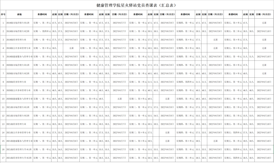 出勤率较好的班级有:2019级市场营销专业1班(出勤率100%)、2019级药事管理专业(出勤率100%)、2019级公共事业管理专业(出勤率100%)、2019级健康服务与管理专业(出勤率100%)、2020级市场营销专业1班(出勤率100%)、2020级药事管理专业(出勤率100%)、2020级健康服务与管理专业(出勤率100%)、2021级市场营销专业1班(出勤率100%)、2021级药事管理专业(出勤率100%)、2021级健康服务与管理专业(出勤率100%)、2021级药事管理专升本1班(出勤率100%)。
