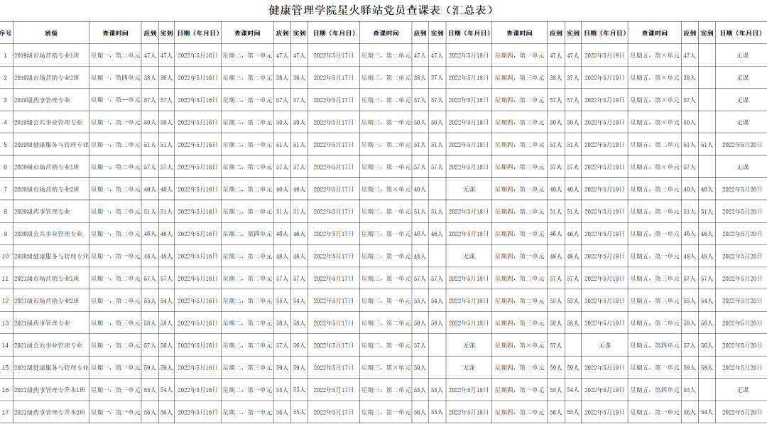 出勤率较好的班级有:2019级市场营销专业1班(出勤率100%)、2019级药事管理专业(出勤率100%)、2019级公共事业管理专业(出勤率100%)、2019级健康服务与管理专业(出勤率100%)、2020级市场营销专业1班(出勤率100%)、2020级市场营销专业2班(出勤率100%)、2020级药事管理专业(出勤率100%)、2020级公共事业管理专业(出勤率100%)、2020级健康服务与管理专业(出勤率100%)、2021级市场营销专业1班(出勤率100%)、2021级药事管理专业(出勤率100%)、2021级药事管理专升本1班(出勤率100%)。
