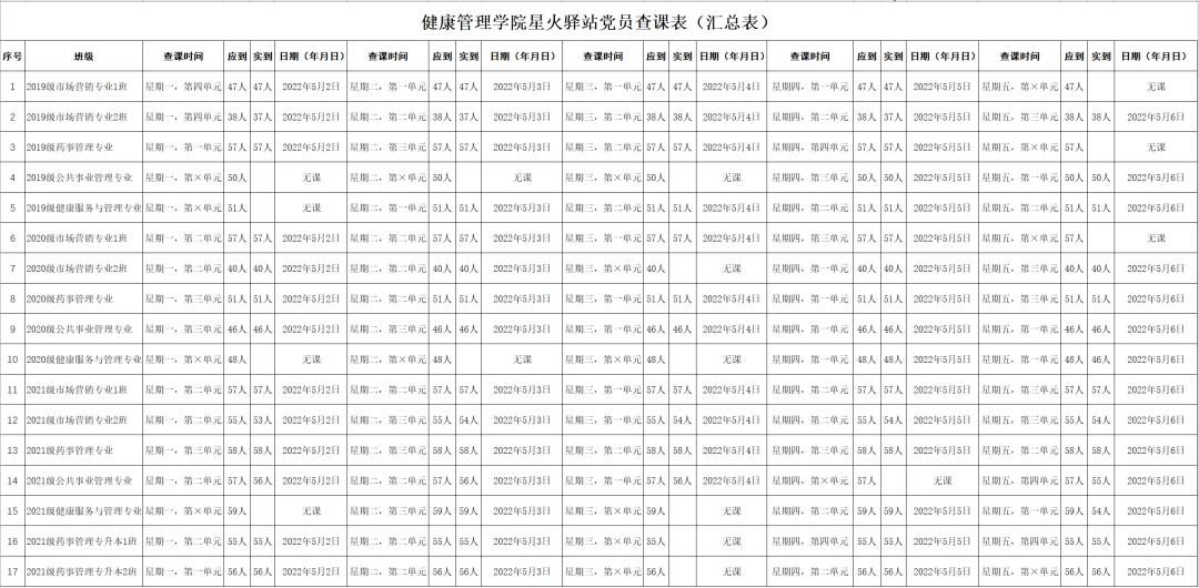 出勤率较好的班级有:2019级市场营销专业1班(出勤率100%)、2019级药事管理专业(出勤率100%)、2019级公共事业管理专业(出勤率100%)、2019级健康服务与管理专业(出勤率100%)、2020级市场营销专业1班(出勤率100%)、2020级市场营销专业2班(出勤率100%)、2020级药事管理专业(出勤率100%)、2020级公共事业管理专业(出勤率100%)、2021级市场营销专业1班(出勤率100%)、2021级药事管理专业(出勤率100%)、2021级药事管理专升本1班(出勤率100%)、2021级药事管理专升本2班(出勤率100%)。