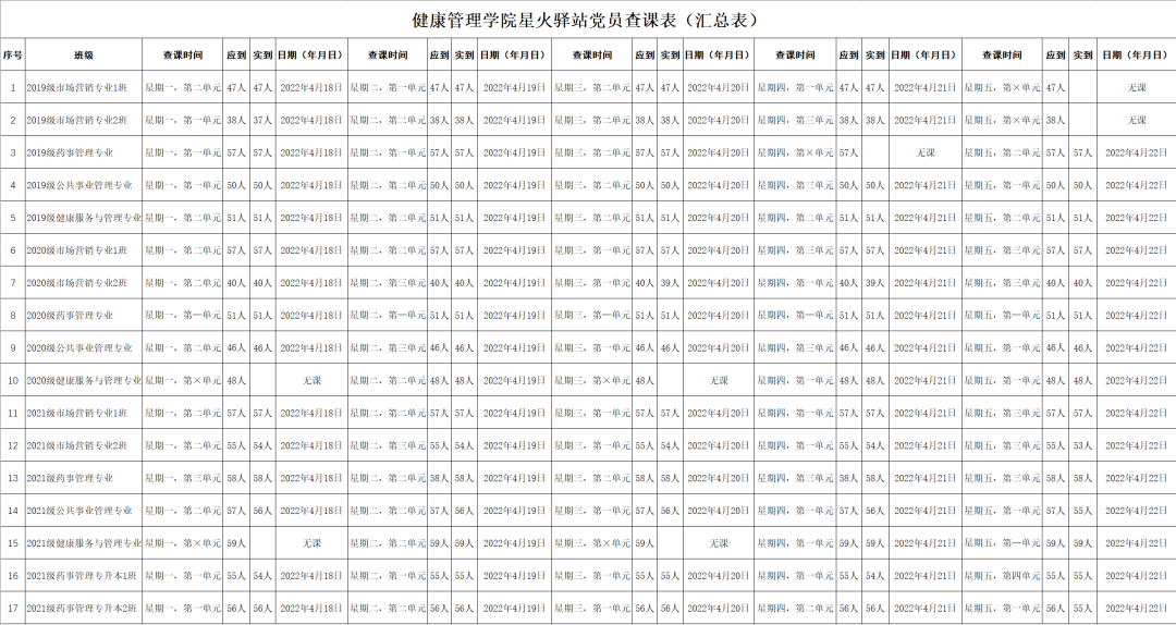 出勤率较好的班级有:2019级市场营销专业1班(出勤率100%)、2019级药事管理专业(出勤率100%)、2019级公共事业管理专业(出勤率100%)、2019级健康服务与管理专业(出勤率100%)、2020级市场营销专业1班(出勤率100%)、2020级药事管理专业(出勤率100%)、2020级公共事业管理专业(出勤率100%)、2020级健康服务与管理专业(出勤率100%)、2021级市场营销专业1班(出勤率100%)、2021级药事管理专业(出勤率100%)、2021级健康服务与管理专业(出勤率100%)、2021级药事管理专升本1班(出勤率100%)、2021级药事管理专升本2班(出勤率100%)。