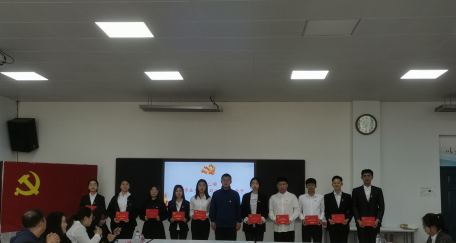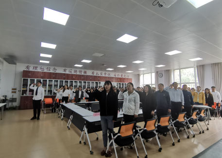 2017级财务管理专业毕业生党员杜秉林带领全体党员重温了入党誓词。在鲜红的党旗下,全体党员举起右手、握紧拳头,庄严宣誓。党员们重温最初入党宣誓时的庄严承诺和坚定决心,在党旗下接受心灵的净化和洗礼,铭记共产党员的政治责任和历史使命。