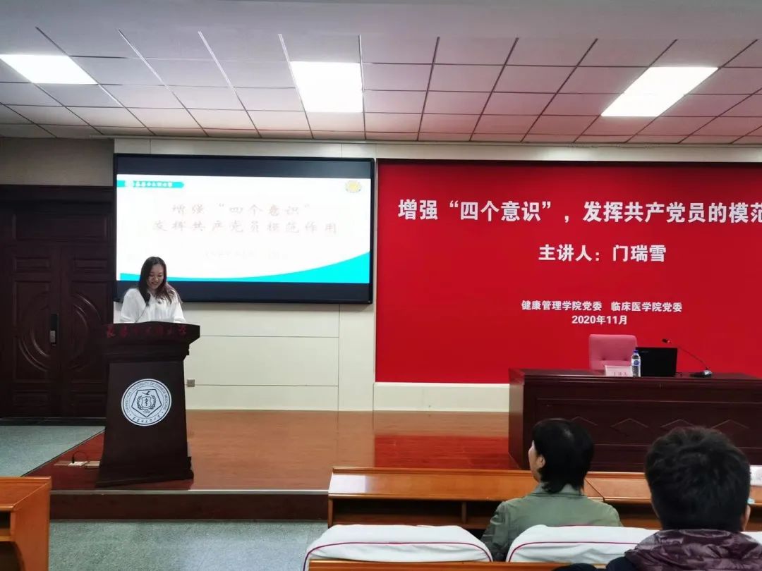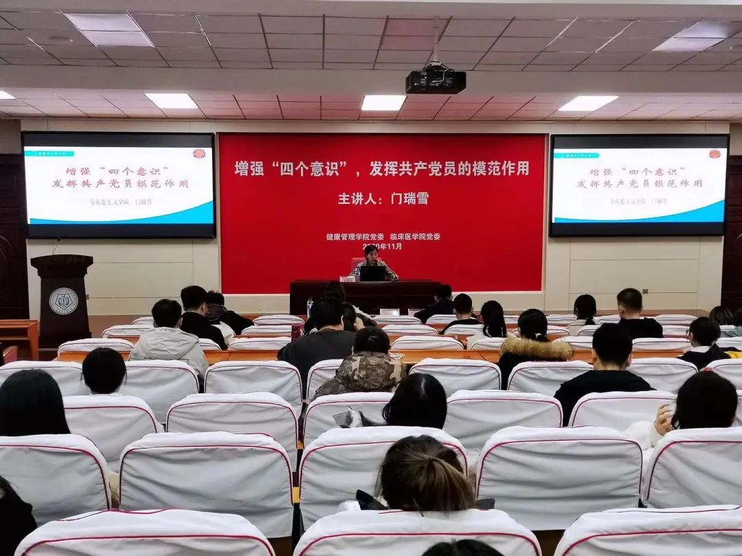 2020年11月16日,KY开元集团官网、临床医学院党校学生入党积极分子培训班在致知楼莲心报告厅举行,邀请到马克思学院院长门瑞雪教授作题为《增强“四个意识”,发挥共产党员的模范作用》的专题党课。