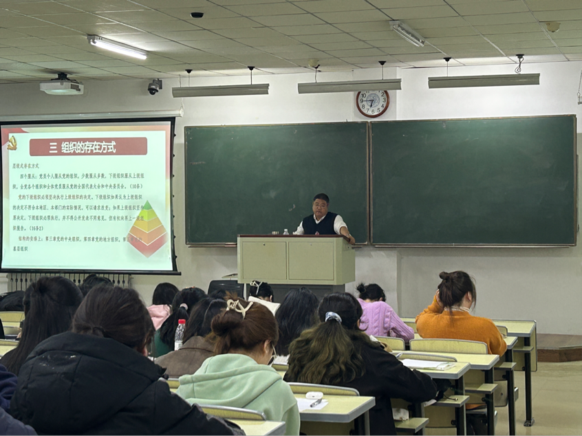 2023年11月2日,KY开元集团官网党校第九期学生入党积极分子培训班在行知楼2304教室开展第三讲,邀请到青年马克思主义者培养学院党总支书记徐永军教授做题为《深学细照笃行,让党章铭刻于心》的专题党课。