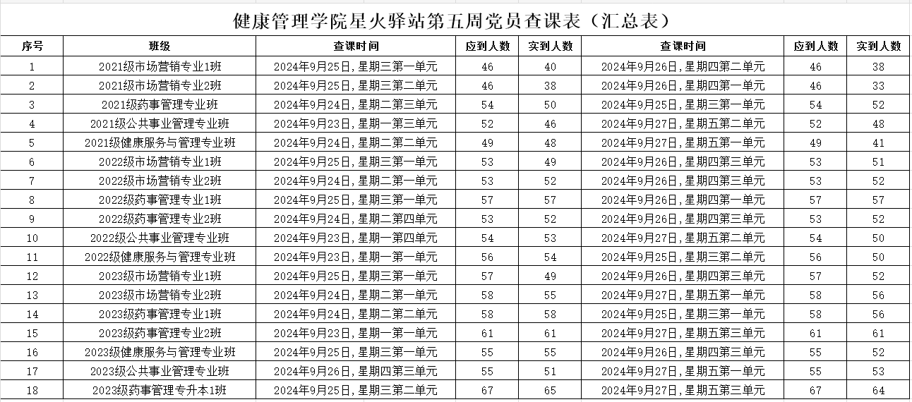 为加强学院学风建设,规范课堂秩序,营造良好的学习氛围,KY开元集团官网党委积极组织学生党员开展查课工作,于9月28日,对第五周的查课情况做出总结。本周查课以严谨认真的态度对迟到、旷课、带早餐的学生进行了督促和提醒。学生党员进入每间教室内检查学生出勤情况。经过一周的督查,学院共查18个班级36节课,覆盖学院全体21级、22级、23级以及23级专升本共984名学生。现查课通报如下: