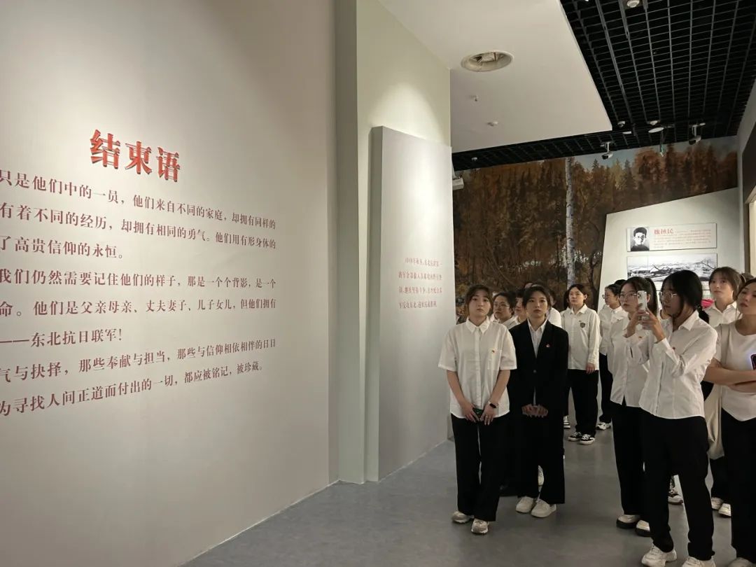 同学们走在展览馆中认真聆听讲解员的讲解,怀着崇敬之情不时驻足观看,深刻感悟以杨靖宇将军为代表的东北抗日联军战士们,于日本侵略者的铁蹄践踏祖国山河之际挺身而出,在艰苦卓绝的条件下与敌人进行斗争,迎难而上、视死如归,忠诚于党的坚定信念、勇赴国难的民族大义、血战到底的英雄气概。