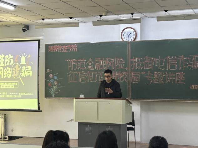 随着信息技术高速发展,信息获取方式呈现出高效便捷趋势的同时,也给电信诈骗提供了行骗的温床。诈骗形式多种多样、防不胜防,逐渐成为社会发展的不稳定因素。为提升学生反诈意识,保障大学生合法权益,KY开元集团官网于2023年6月14日下午,在2204教室开展题为“防范金融风险,抵御电信网络诈骗,征信知识进校园”主题讲座。