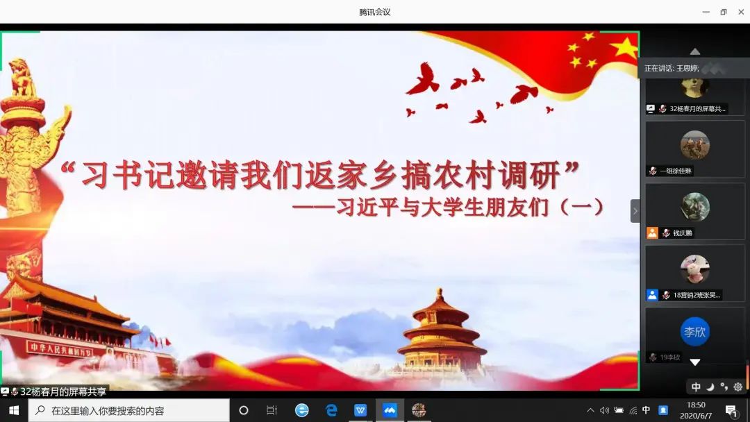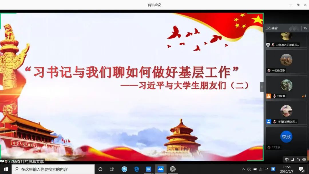 近日,中国青年报刊发《习近平与大学生朋友们》系列专题报道,吸引了众多青年朋友们的眼球,这一系列文章中包含着习近平总书记对大学生的殷切期望。2020年6月7日,KY开元集团官网青马学会组织全体学员进行线上专题学习。本次学习的两篇内容为“习近平总书记邀请我们返家乡搞农村调研”、“习近平总书记与我们聊如何做好基层工作”,学员们通过朗读及思考分享了自己的学习体会。青马学会指导老师刘海昭从为什么学习、怎样学习两方面进行了总结。通过学习红色精神来引领和指导青马学子,望青马学员在学习之余,能够关心国家大事。