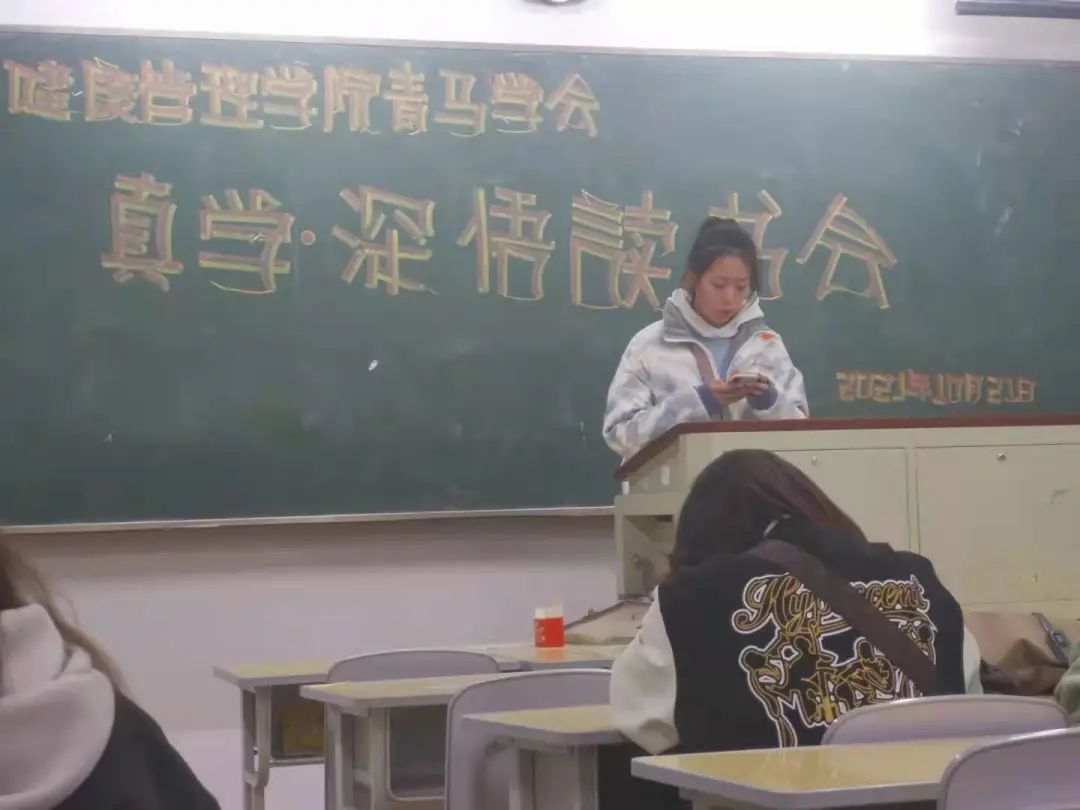 2021年10月21日,KY开元集团官网青马学会组织2019级、2020级青马学员在行知楼2201开展“月读计划”学习四史读书分享班,此次会议由青马学会负责人张昕琪主持。