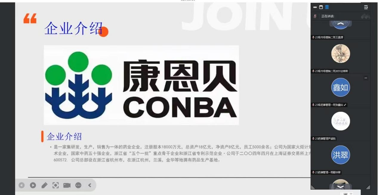 杭州康恩贝制药有限公司是浙江省规模最大的中药企业,集药品和健康产品的研发、生产、销售于一体,综合实力位居中国中药企业前列。宣讲会上,企业代表围绕其核心竞争力进行全方位展示,先介绍公司发展历程,重点讲解行业优势,呈现其核心产品线与企业文化,再深入解析公司的人才培养体系与创新发展战略,通过真实案例分享员工的成长路径。最后,代表针对招聘岗位、职业发展、薪资福利等内容,进行了清晰阐释,引导大家结合自身优势选择方向,鼓励同学们投递简历,携手助力医药健康事业发展。